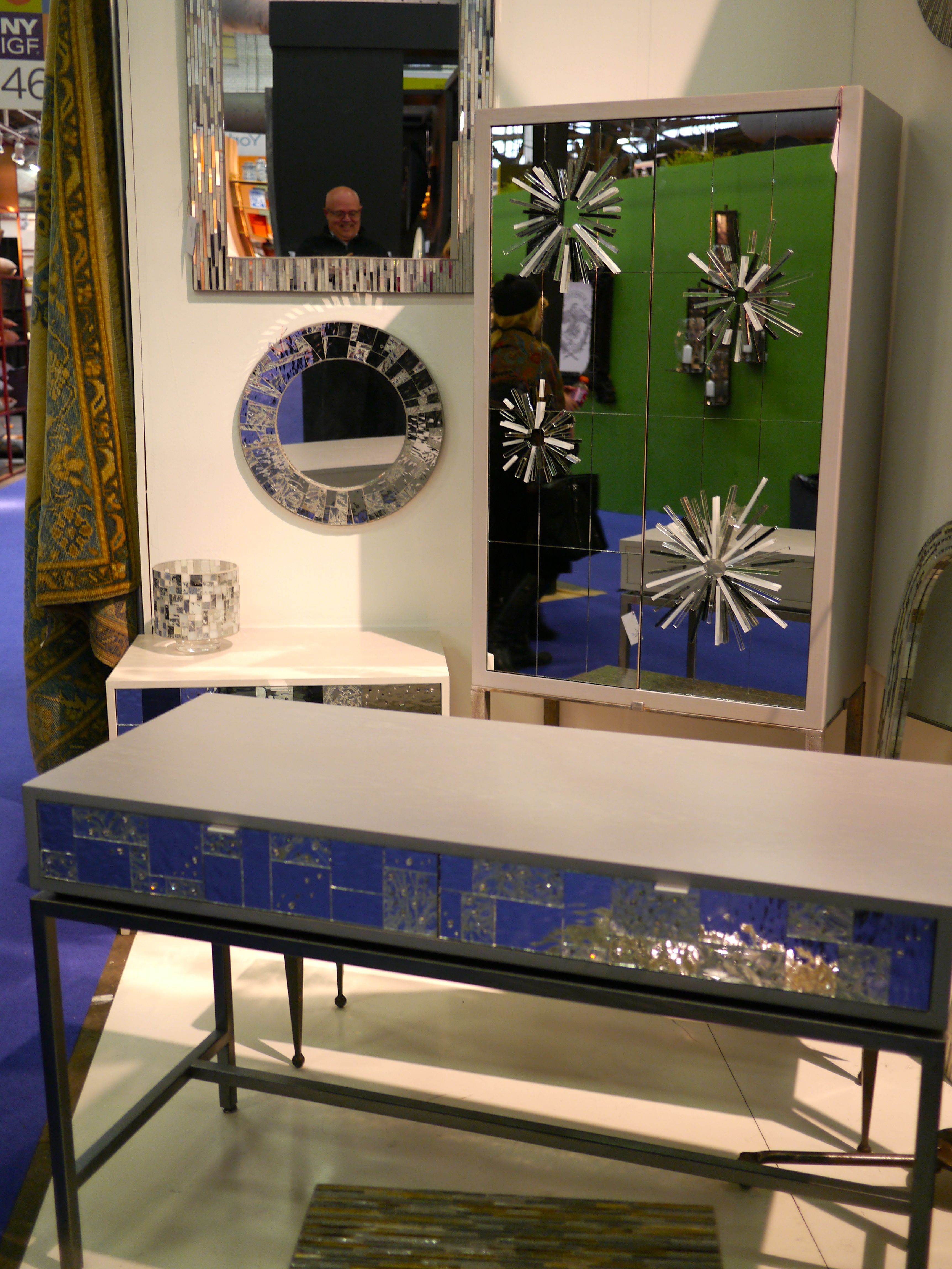 I’ve mentioned Ercole in a previous post. They have taken sparkle and shine to a whole new dimension…literally. Their mosaic work is standard setting in the industry and their craftsmanship is flawless. Now, they’ve gone three-dimensional. Not only are they using glass and mirror mosaic on flat surfaces but they’re building off of those surfaces making their pieces more magical than ever. The armoire you see in the above photo has starburst of glass and mirror affixed to the doors offering texture and depth like no other vendor was showing. This is just on color way. If you can dream it they can build it. They have a New York showroom and are available at ABC Carpet & Home or Signature Designs, Inc
