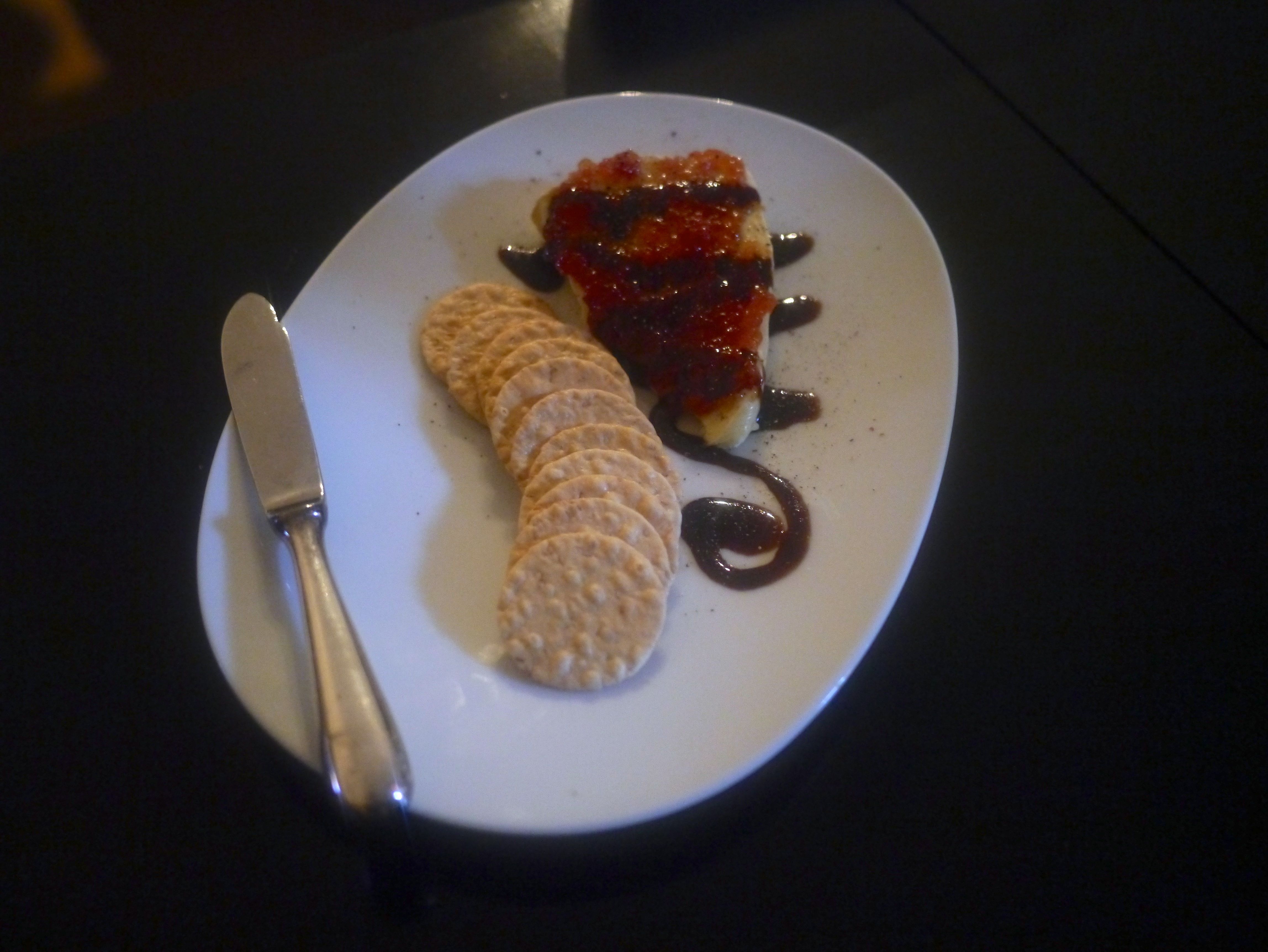 On my return from NYC I hosted a design meeting at the loft. I bought several things to have for the meeting and didn’t use them all. When planning the menu I realized I could really turn pantry items and even leftovers into a special meal. I had a wedge of Fromager d’Affinois…a double-creme cows milk brie and a jar of quince paste. We started the evening with that drizzled with balsamic glaze and served with rice crackers and a glass of Brut Rose Cava.