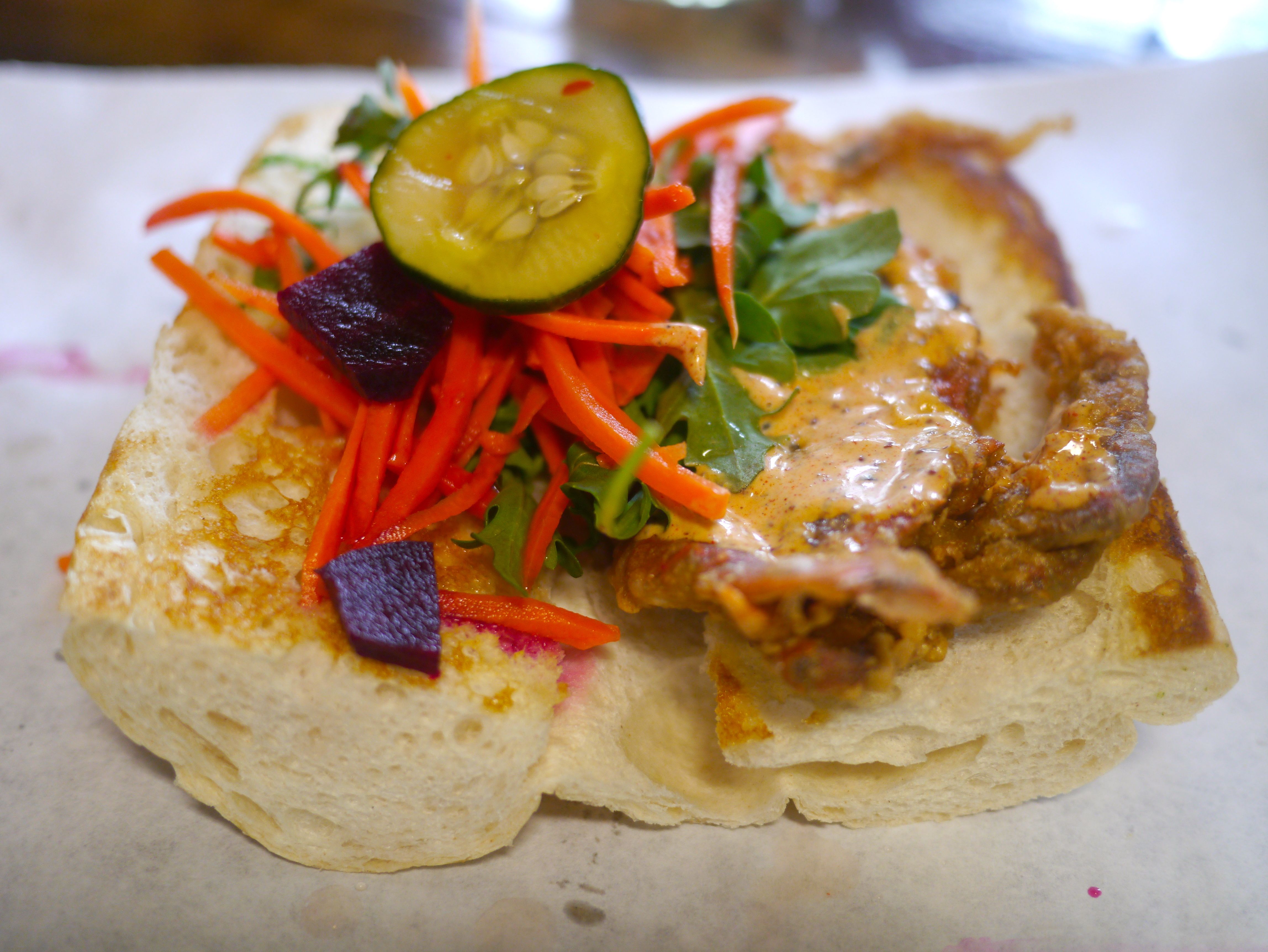 Sorry, licking your monitor will not give you even a hint of how spectacular this was. First of the season-fresh-out-of-the-Gulf Softshell Crabs on Gambino Po-Boy Bread straight from NOLA. The crunch of the Arugula, Julienne Carrots and Pickled Beets with House Made Comeback Dressing made this a study in taste, texture and decadence. Again, this would’ve been an incredible lunch…but, NO!!!