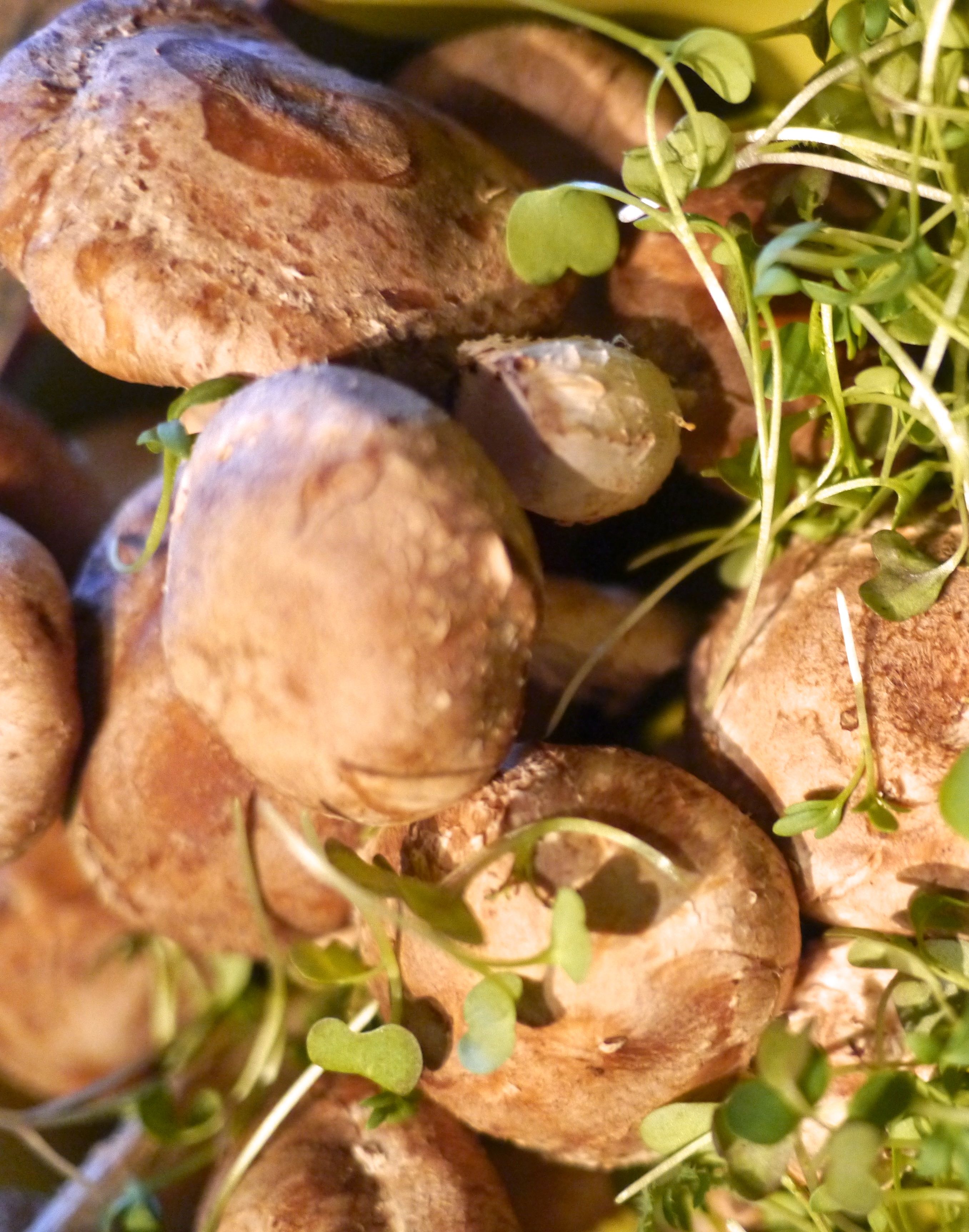 Tonight…Neon Pig Dry-Aged Rib-eyed Au Poivre with Dickey Farms Shiitake Sauce. It’s cold and wet outside but inside the house is lovely and our local farmers are assuring a good time is had by all.