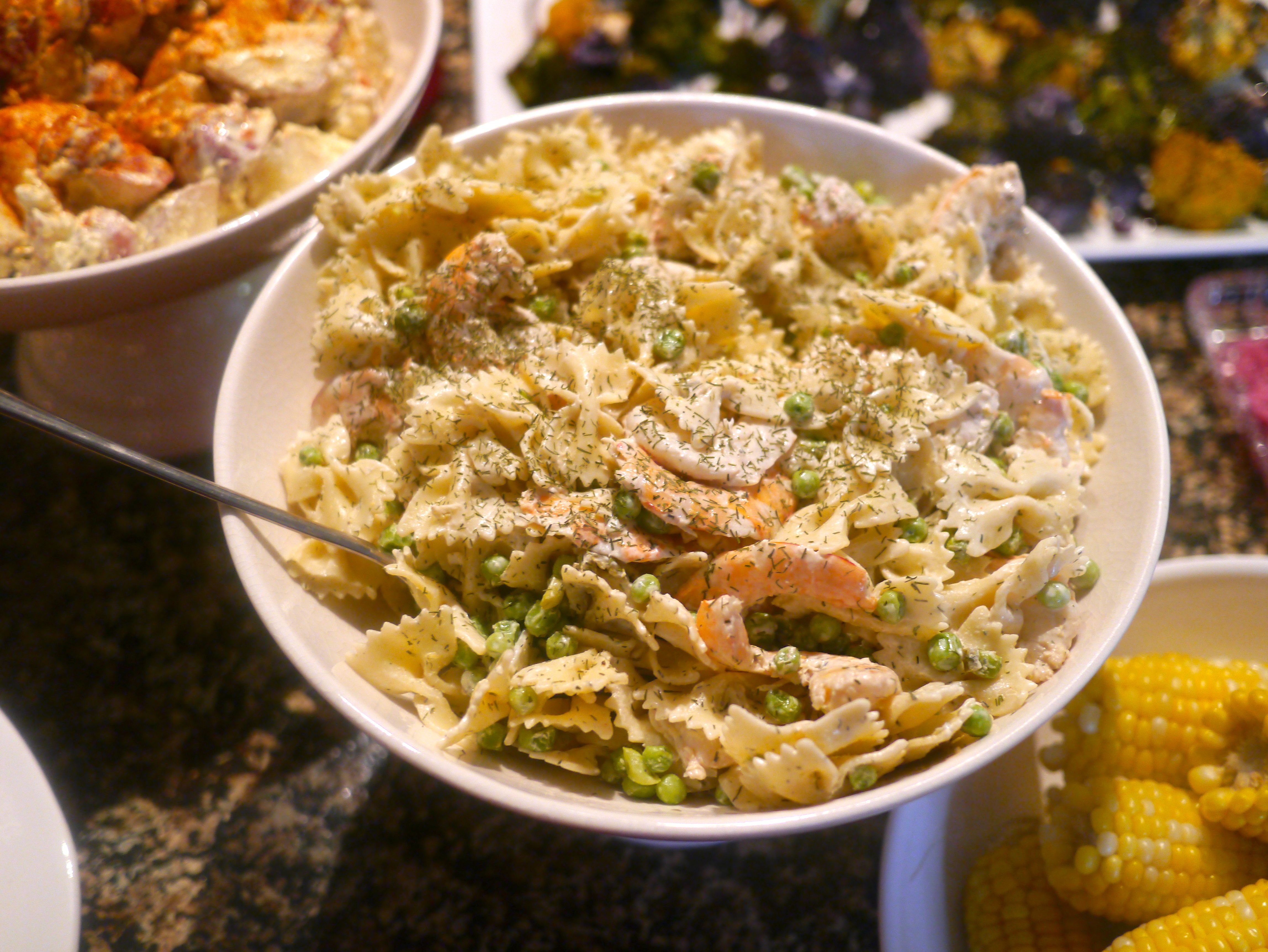 Bow Tie Pasta Salad with Spicy Shrimp, Fresh Spring Peas and Dill