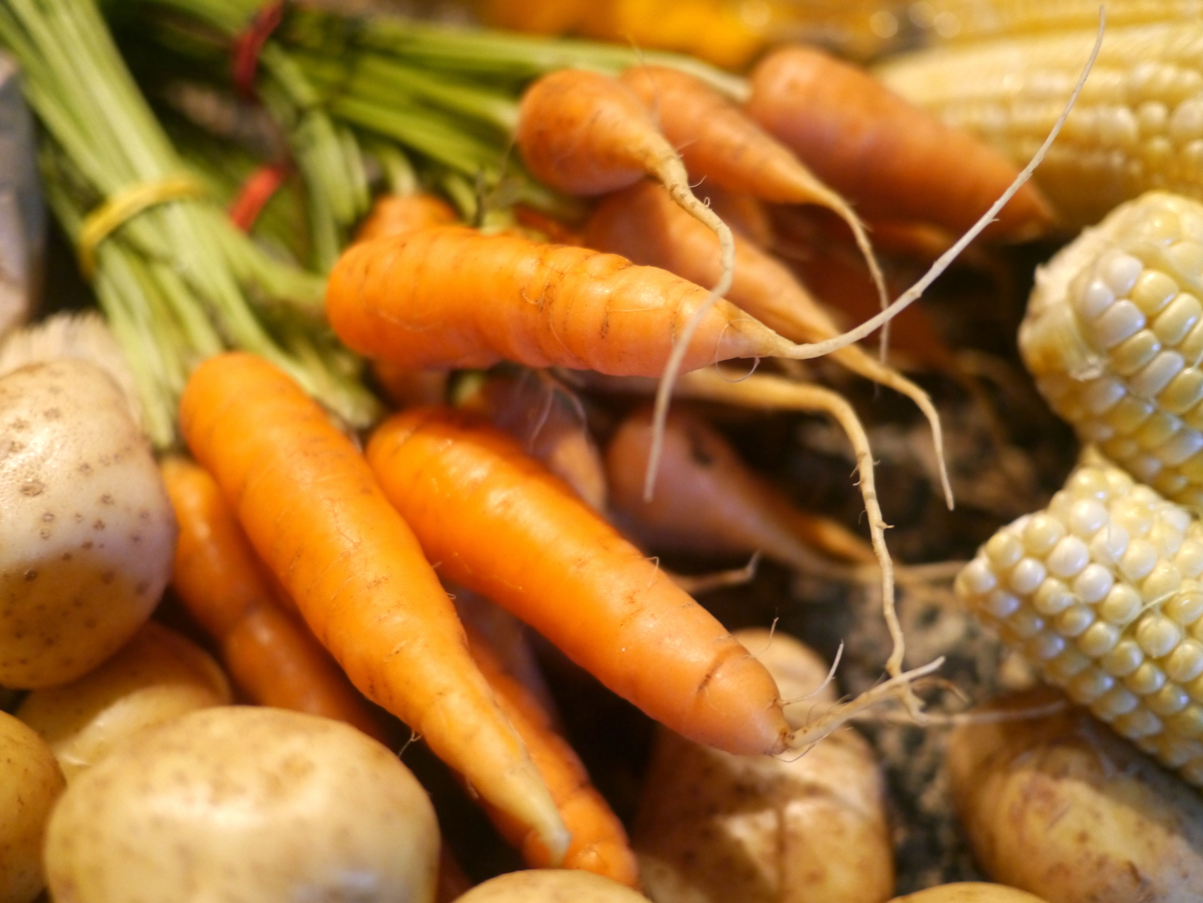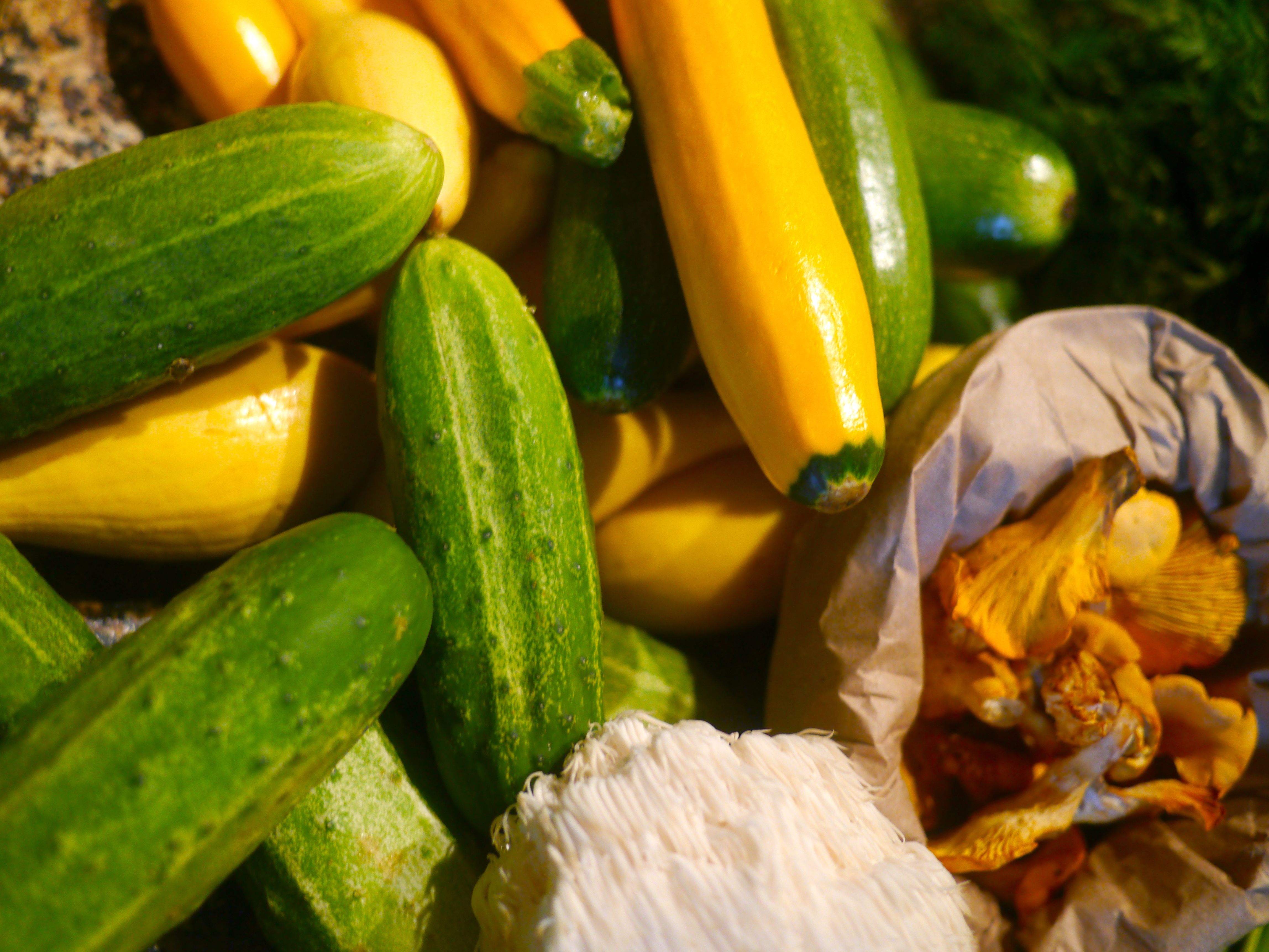 Heirloom Tomatoes, Arugula, Stone Ground Grits, Spring Peas, Cucumbers, Squash, Zucchini Blossoms, Carrots, Potatoes, Chantrelle Mushrooms, Lion’s Mane Mushrooms, Peaches and Cream Corn