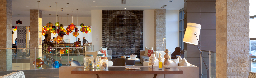 The curator from the Indianapolis Museum of Art curated the art for the hotel. It feels more like an art museum than a hotel. The silhouette seen above is made entirely of black pocket combs.