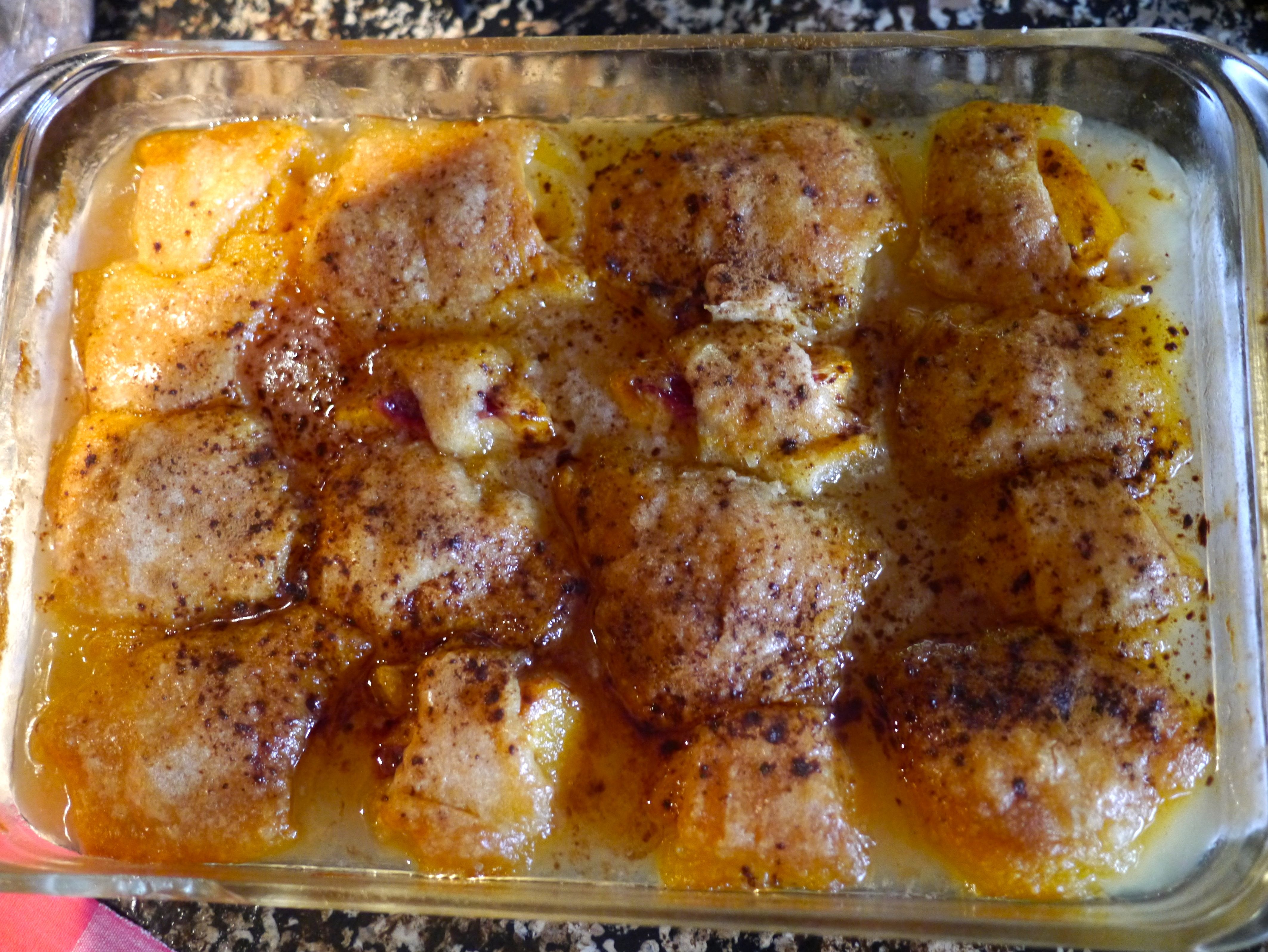 Last week in East Tennessee I heard about this Apple Dumpling recipe that calls for Mountain Dew…you heard me…Mountain Dew. Well, I Googled it and made it with fresh peaches. Oh, how I wish my mother could have some of this. I also made fresh peach ice cream that reminded me of Bro. Gibson…together they were to live for!!!! It’s sinfully rich but the kind of thing that makes you ignore the ingredients because it takes you to that special place to ponder things dear to your heart.
