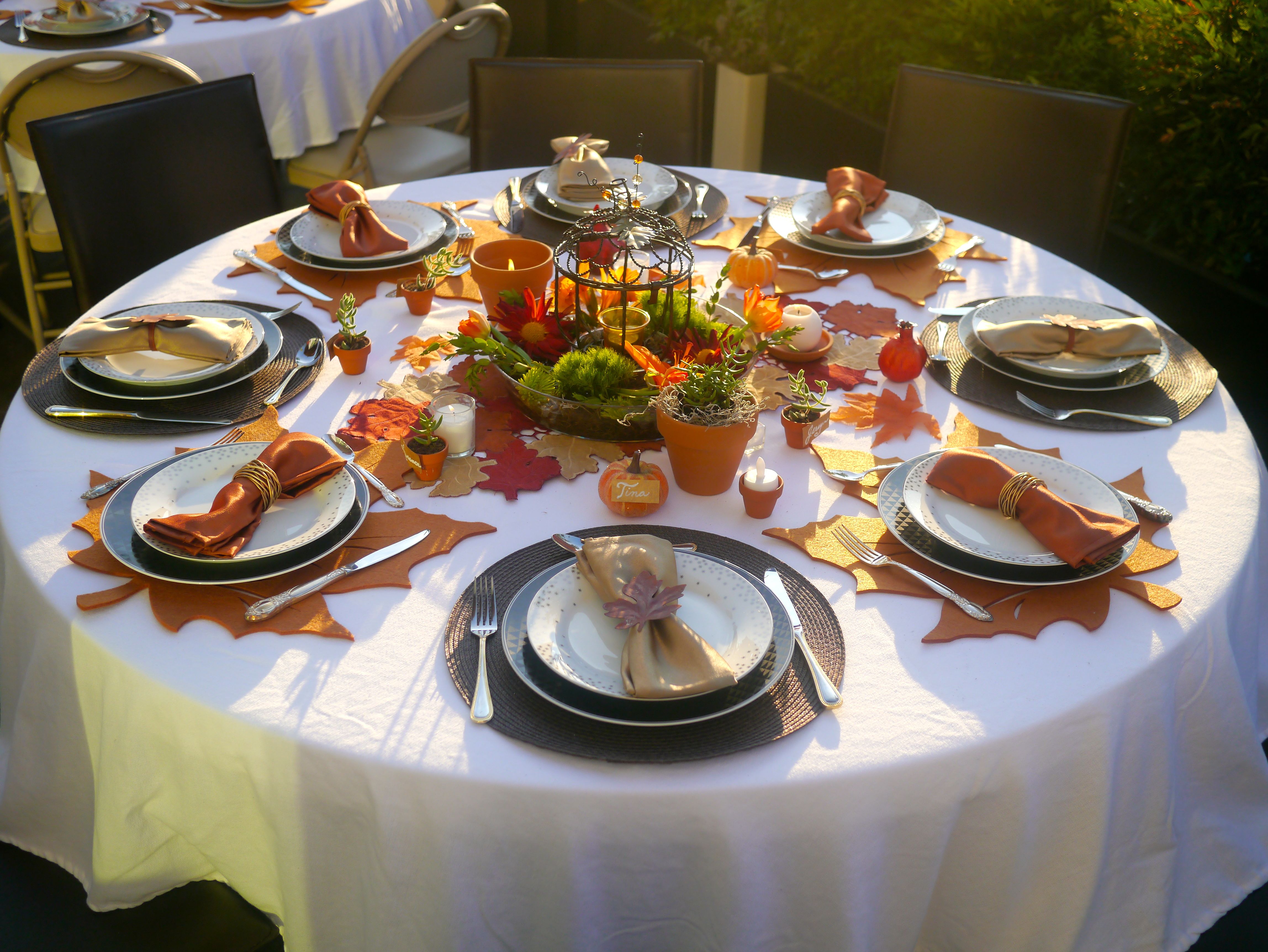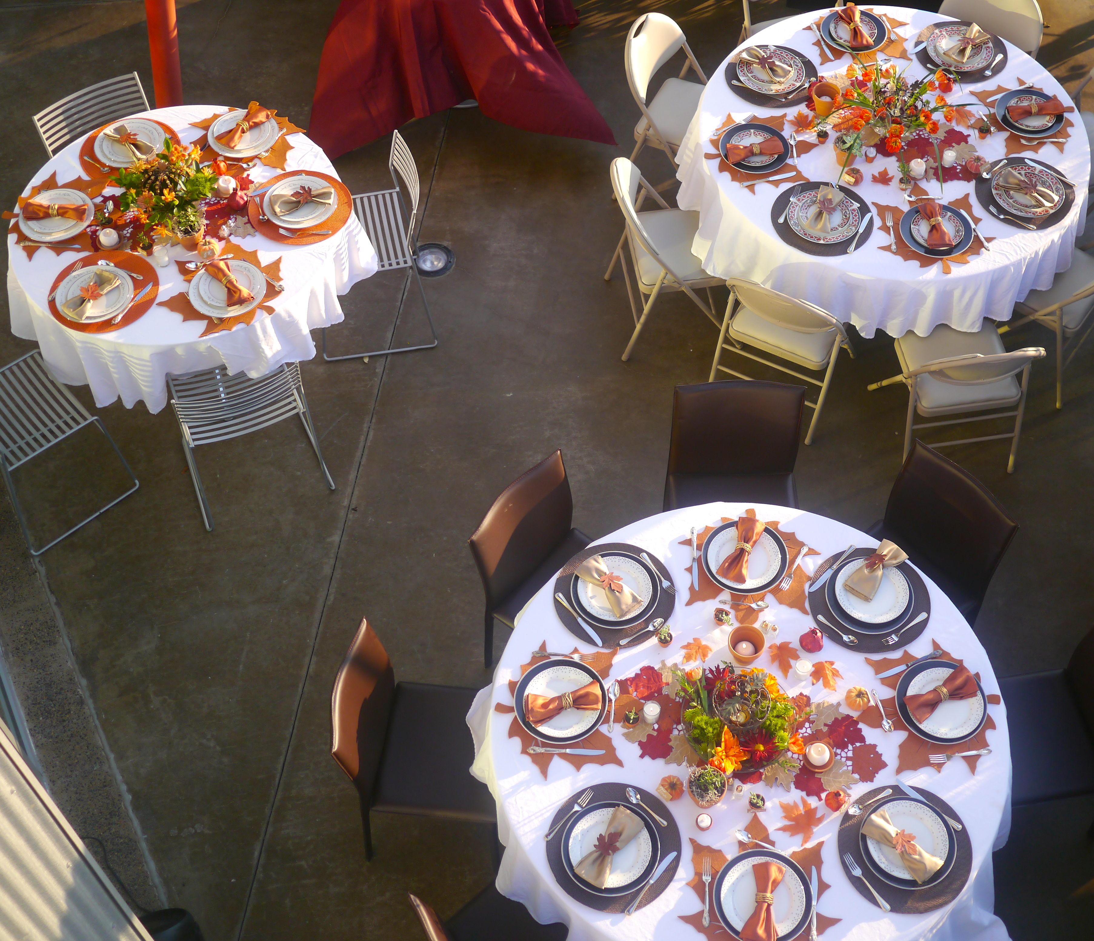 The tables were elegantly dressed in fall attire. The range of colors and textures were reflective of all the autumnal pleasures. The view from the deck off of the third floor master suite encompasses all the tables beckoning the guests…come and dine!!!