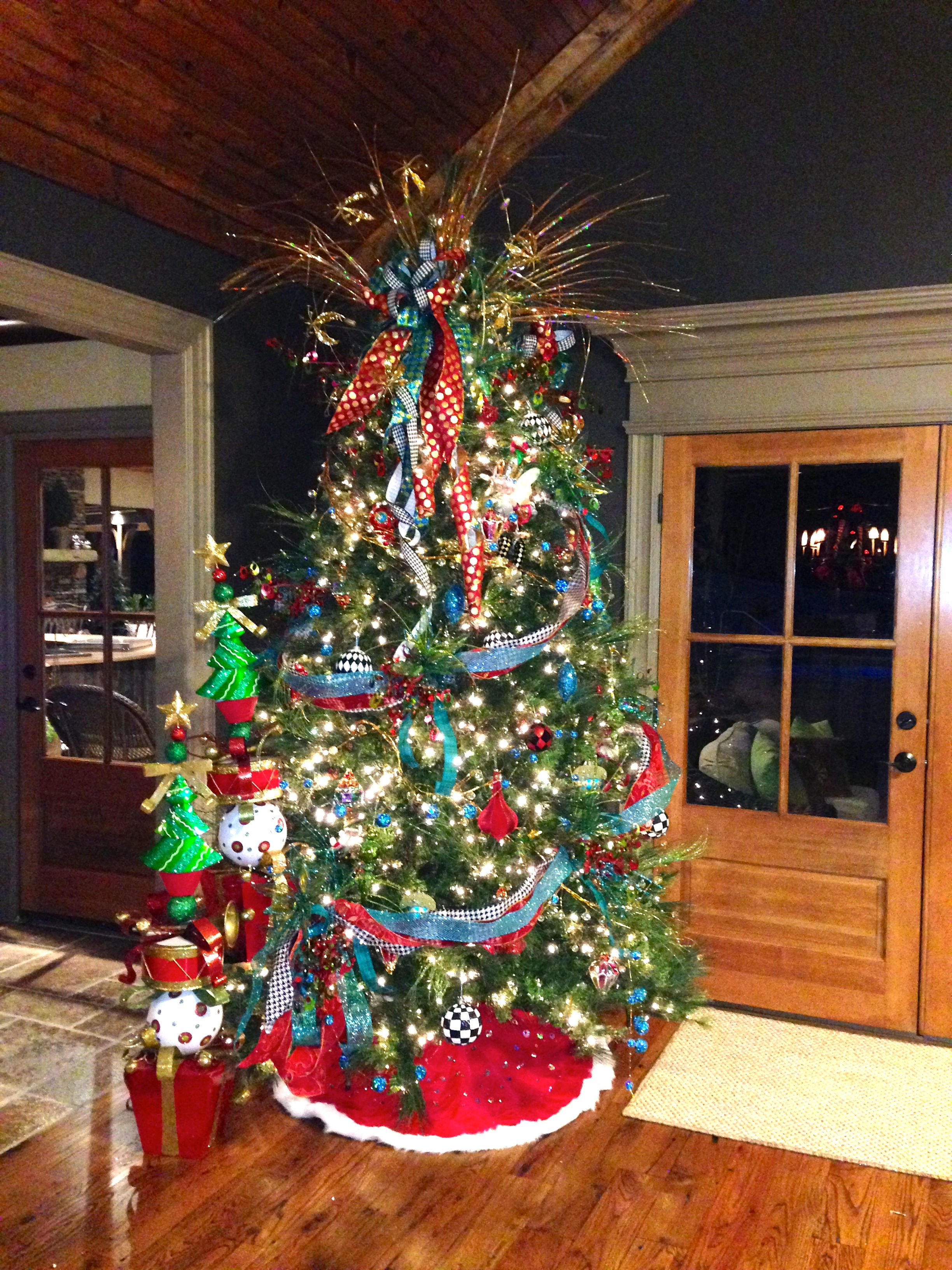 The family room tree is dressed in whimsy and fancy. Mark Roberts fairies, houndstooth and gingham check and a rich turquoise make this tree elegant, fashion forward and just plain FUN!!!