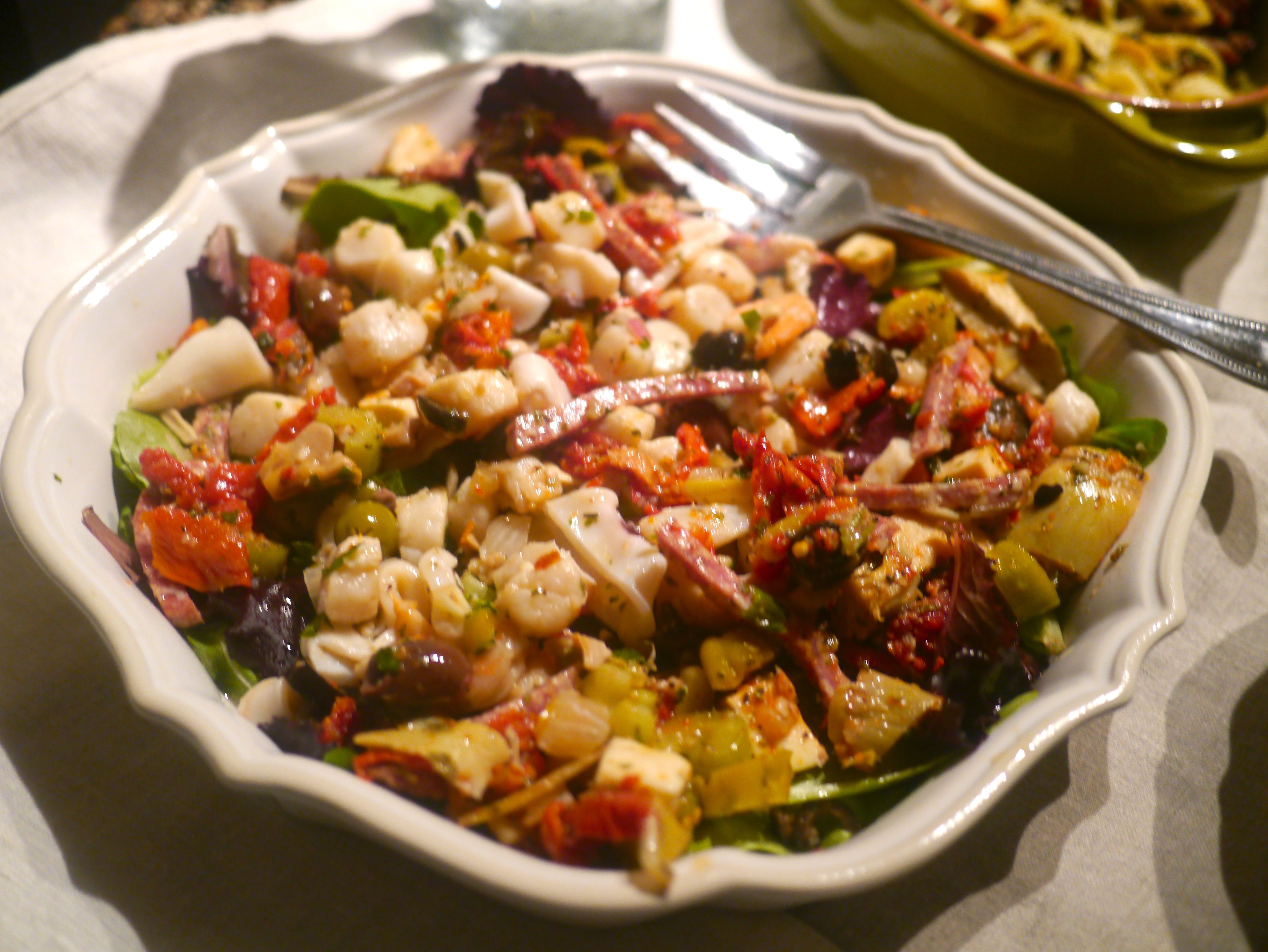 I know, I know…not exactly leftovers in refrigerator bowls heated in the microwave. That’s just not how mother did it and I don’t either. The deconstructed turkey seemed to get better every time we pulled it out of the fridge. Mom’s dressing in her Corning Ware casserole dish is extremely comforting to me. “Chicken Dressing” was one of her mainstays. I think some folks hoped they would have a death in the family just to get “Chicken Dressing”. We had a small bowl of green bean casserole and a bowl of “pea salad” served in Stella’s china. The seafood antipasti had seasoned to perfection as had the handmade pasta and beef ragu. I did fresh creamed potatoes and Carrie brought a sinfully good “watergate” salad.