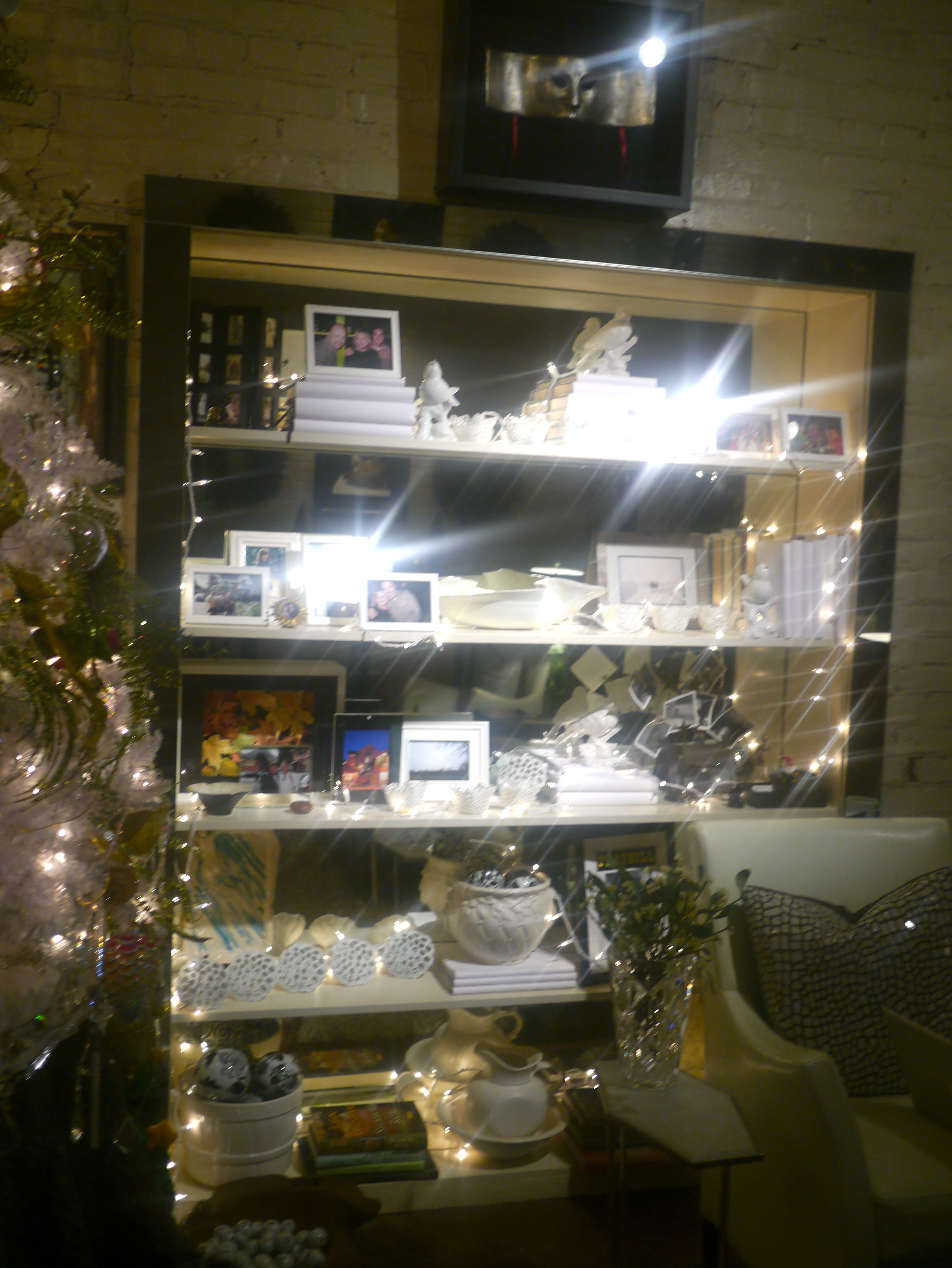 The built-in curio gets a strand of crystal lights to help illuminate all the books, collectibles and photos that rest there.