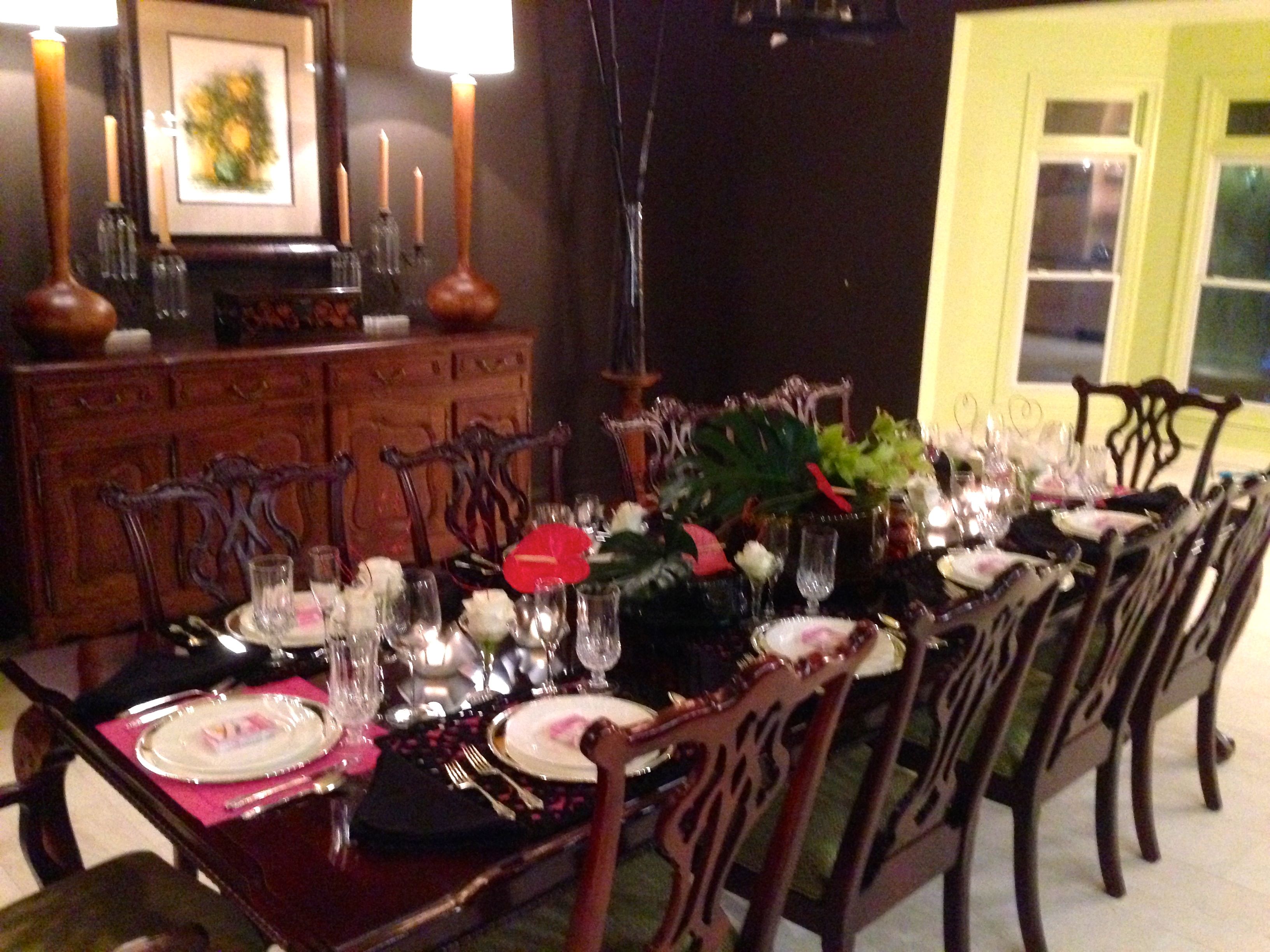 The table is yet to come. When it arrives I’ll make sure I have better lighting so you can appreciate the magnificent lacquer finish on the cabinets. Even with the existing table the room is absolutely lovely and last evening…a good time was had by all.
