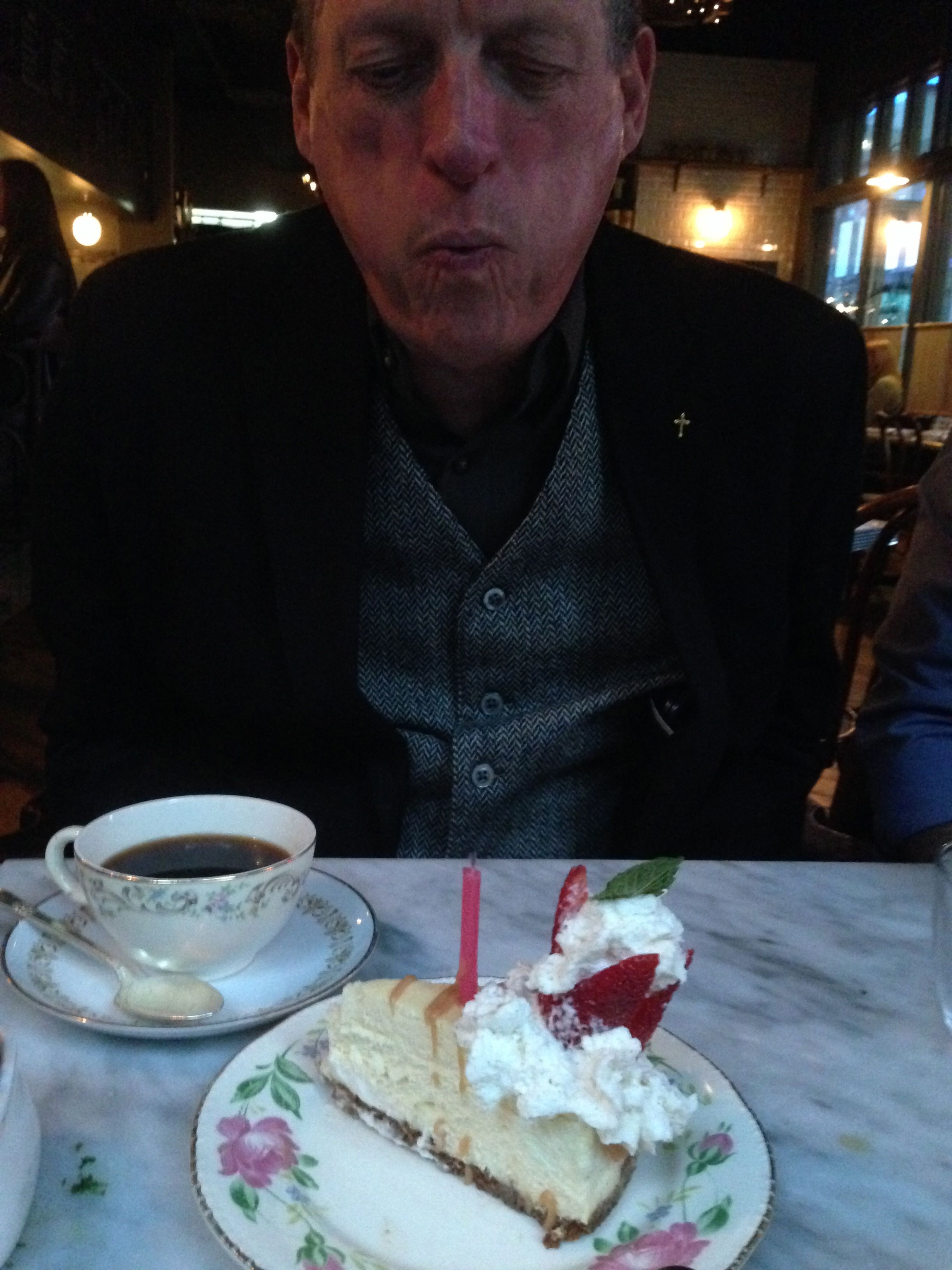 They took him out for a French dinner…his favorite…FREE cheesecake for the birthday boy!