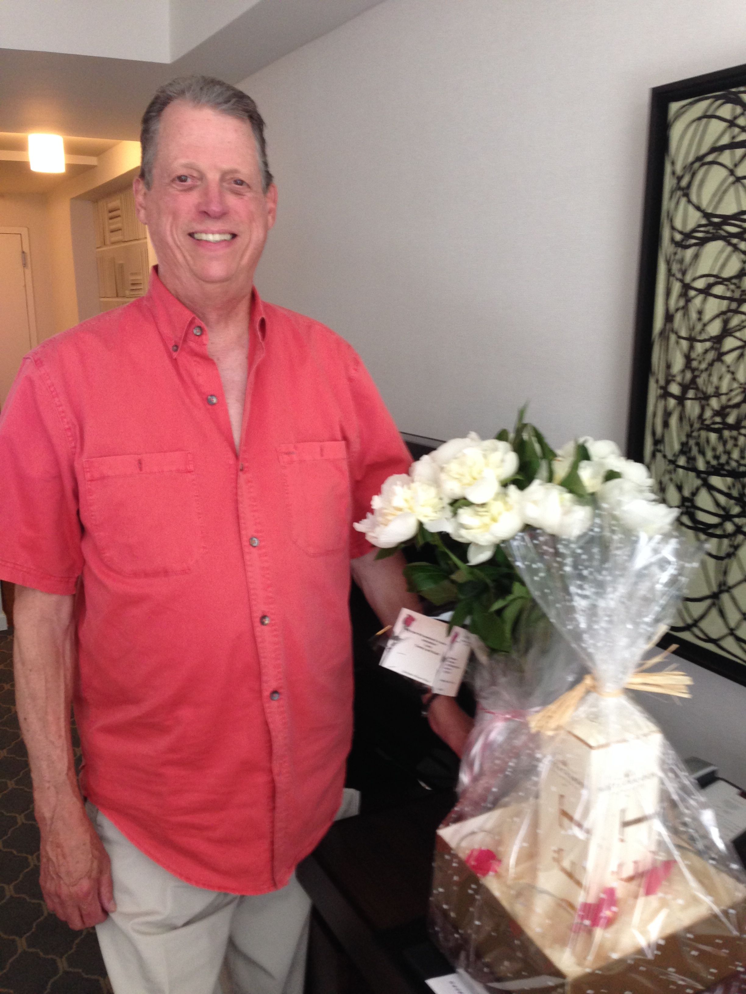 We got to our room and my favorite Broadway star was welcomed by flowers and champagne from our dear friends Tommy and Scott.