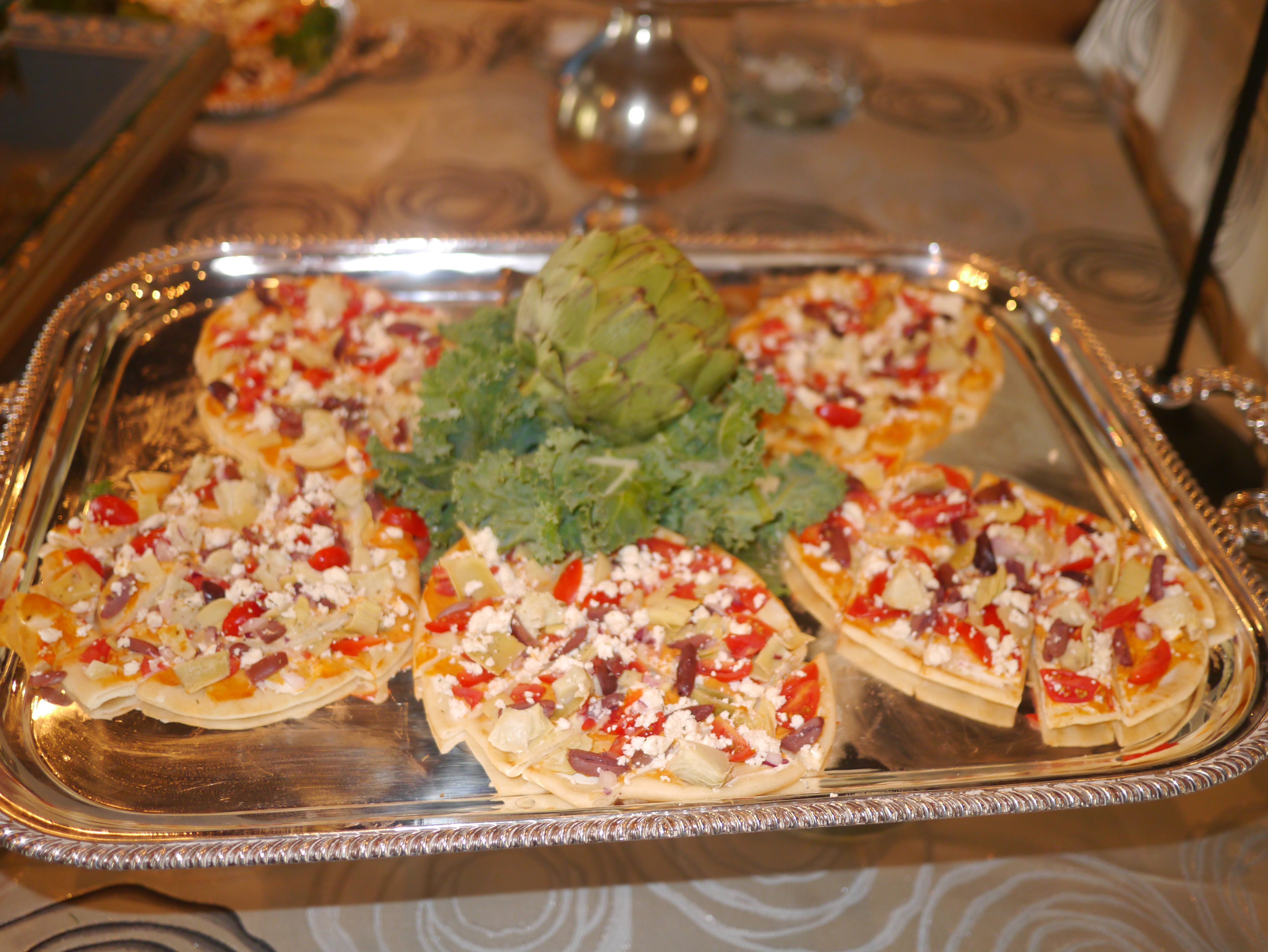 They were greeted in the Grey Manor foyer with a Signature Cocktail we called BLISS…Cava with Chartreuse, Sweet Vermouth and an Orange Twist. We also offered Mini Crabcakes with Comeback Sauce and Fried Artichokes with Lemon Aioli.