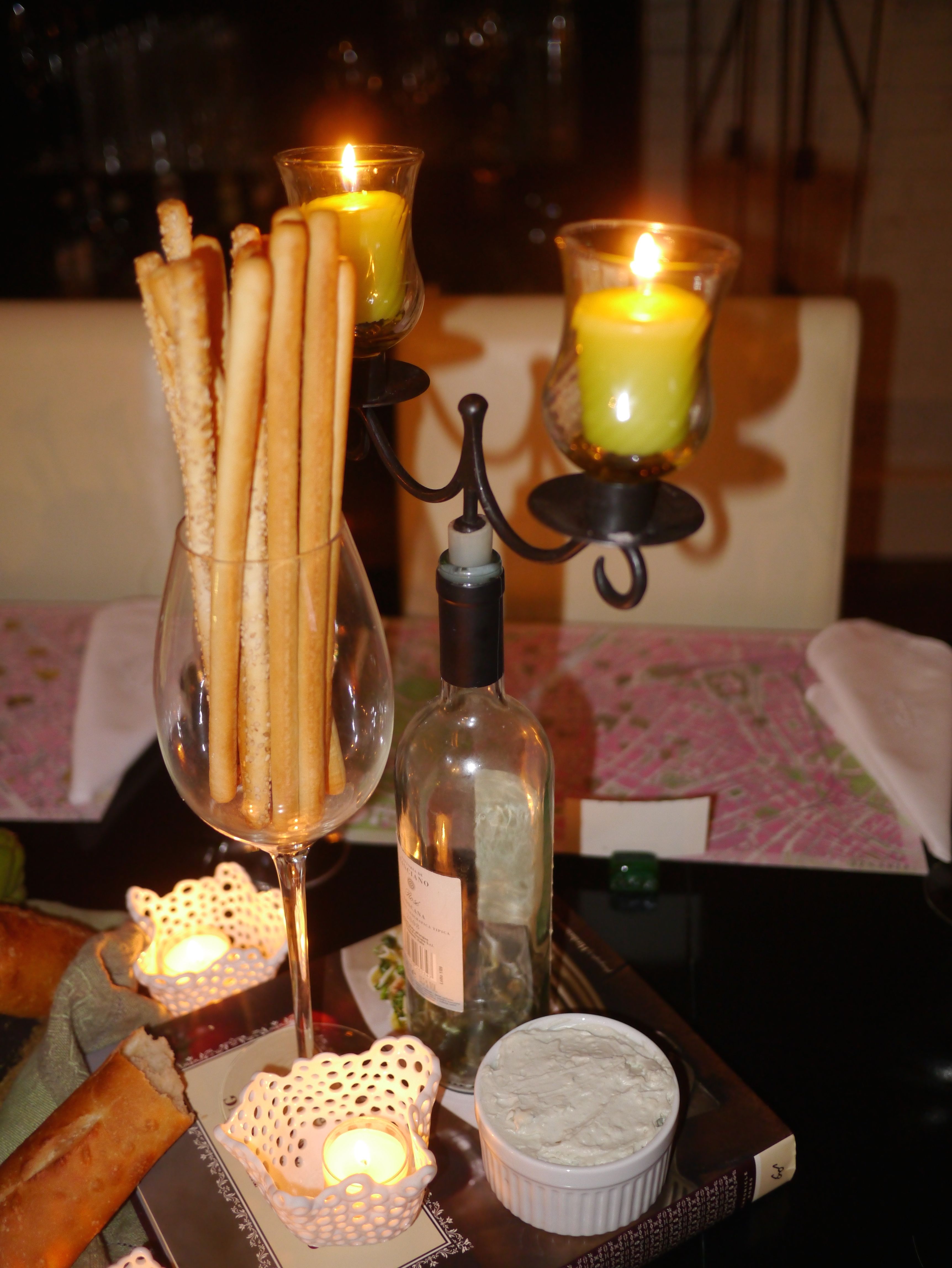 I did a Gorgonzola Spread with bread sticks to munch on between courses. The wine bottles holding the candles are from Fattoria Cinciano…the villa and vineyards where we stayed on our first trip.