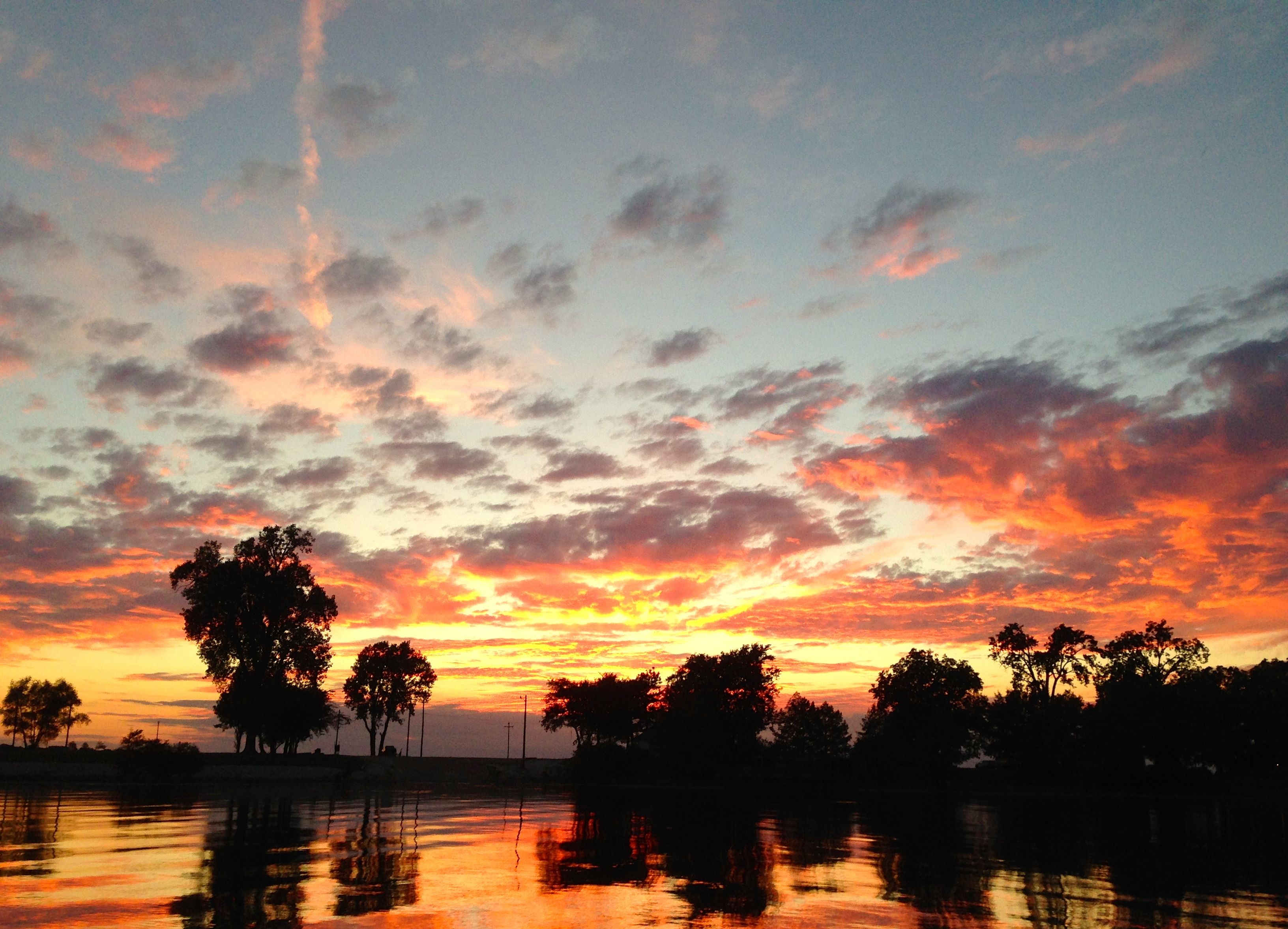 We had a little work to do as we are doing a business dinner next week.  But then, took a “cocktail cruise”.  We got out on the lake and could just barely see the sun as it set inside the trees.  Then, like someone turned on a switch, the sky came to life in a glorious exposition of color and light. We were all in awe at the majesty and glory of this natural display of nature.