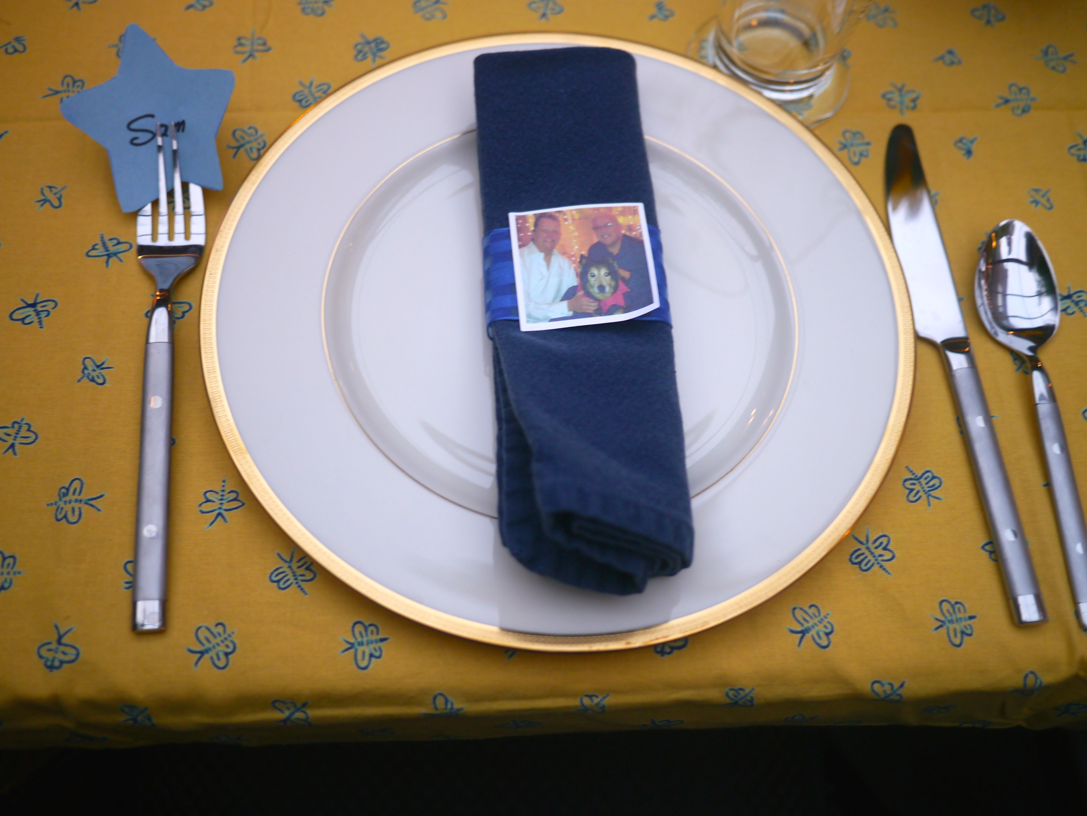 These personal touches were incredibly special.  Sharon found photos that she knew would touch my heart and created napkin rings with them.  When someone takes the time for these kinds of details it serves to amplify the love and appreciation we already share. She included holiday photos of us with Toby, scenes of me cooking in Italy and of course me with the sweetest man in the world.  It’s the little things…