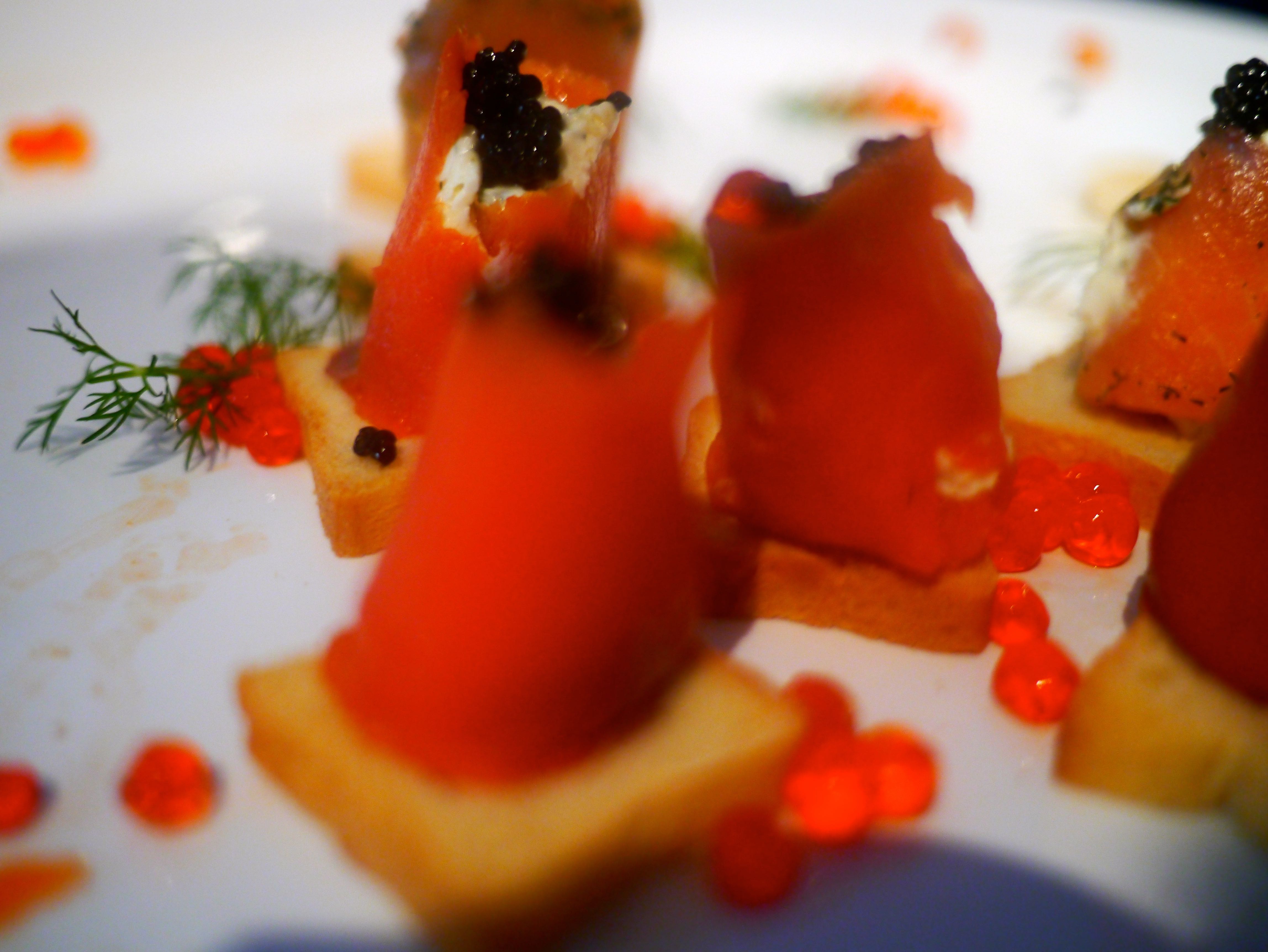 Bite-sized Caprese and Smoked Salmon towers by Jim and Linda