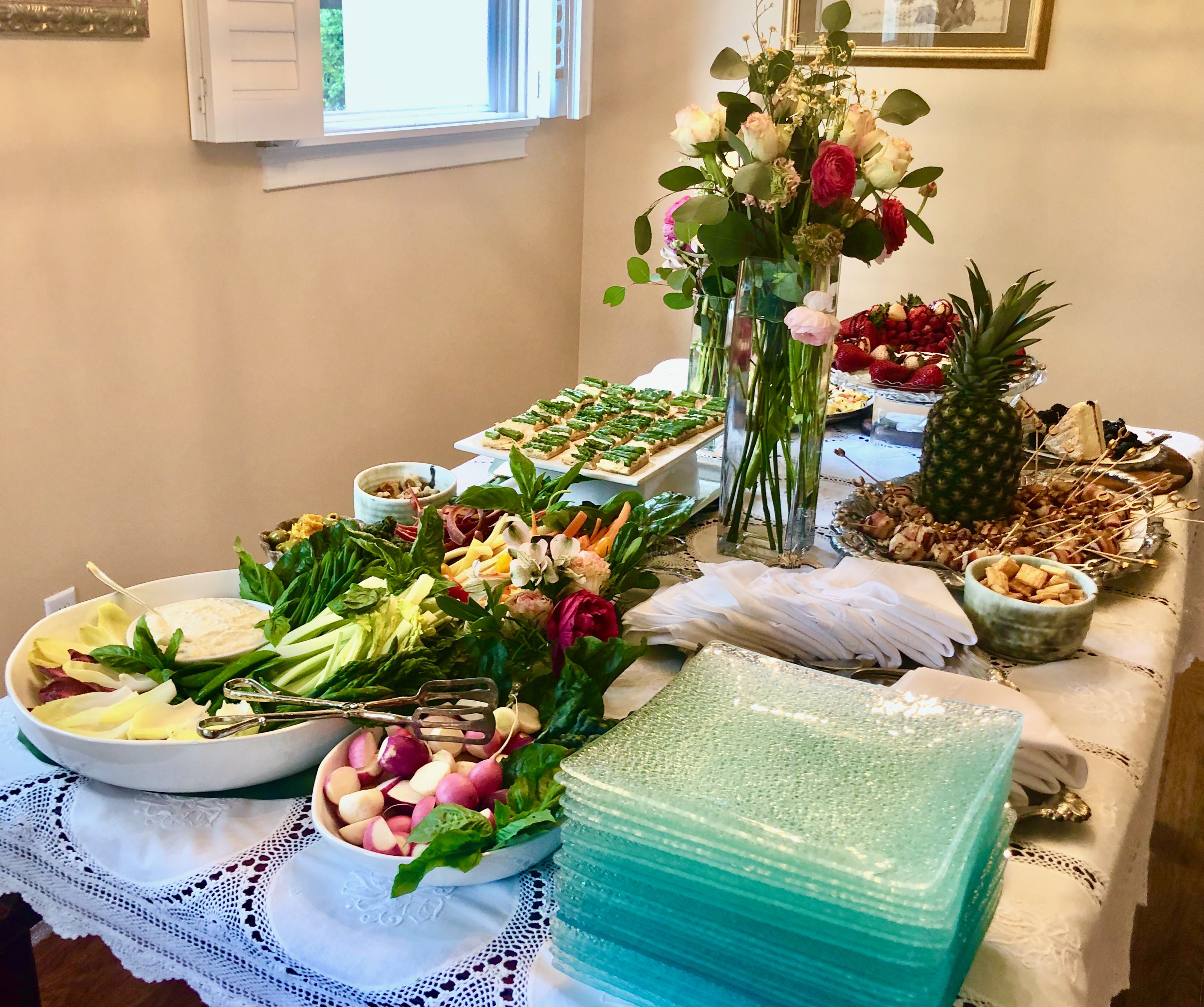 I’m reminded of the comments like “get back in the saddle”…”it’s like riding a bike”…or “pick yourself up, brush yourself off and start all over again.” It’s been a long time since I did a party for more than eight people. It’s been an even longer time…like 20 years since I actually catered an event away from my kitchen. I opened Bon Appétit Catering in 1984 in Jackson, MS. It was instantly successful for my ability to make delicious food and present it with tantalizing aesthetic. I worked alongside Carol Puckett in Jackson’s first gourmet kitchen store and cooking school when she introduced the Southeast to Martha Stewart. I also worked with Billye Taylor to establish Taylor Maid, Jackson’s first gourmet grocery and prepared food market. It took less than a year for me to realize all the elements of catering was akin to a marriage. I was either shopping, cooking, presenting or cleaning…every single minute of every single hour of every single day. It was either get married to my work or get out. I chose to return to my passion…music…and only cook for those I love. It was thirty-seven years later when a call from someone I’ve loved as long as she’s lived caused me to dip my toe back into the catering world.
