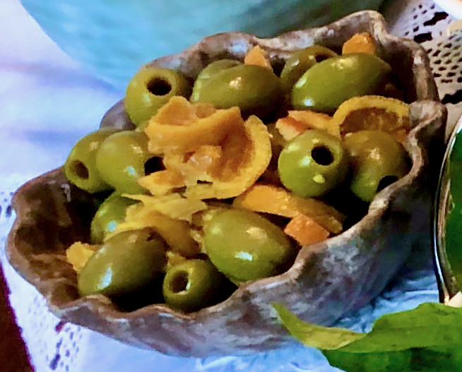 A little extra…which seemed to cause a stir. I was asked to replenish a half hour in and unfortunately had put all out at once. Carrington is known for her nibbles…Cheese Wafers and Blue Cheese Fig Bites. And once again, Forever Friend Delia Parman introduced us to Sweet Sangria Olives…I call them Delia Delicious!!!