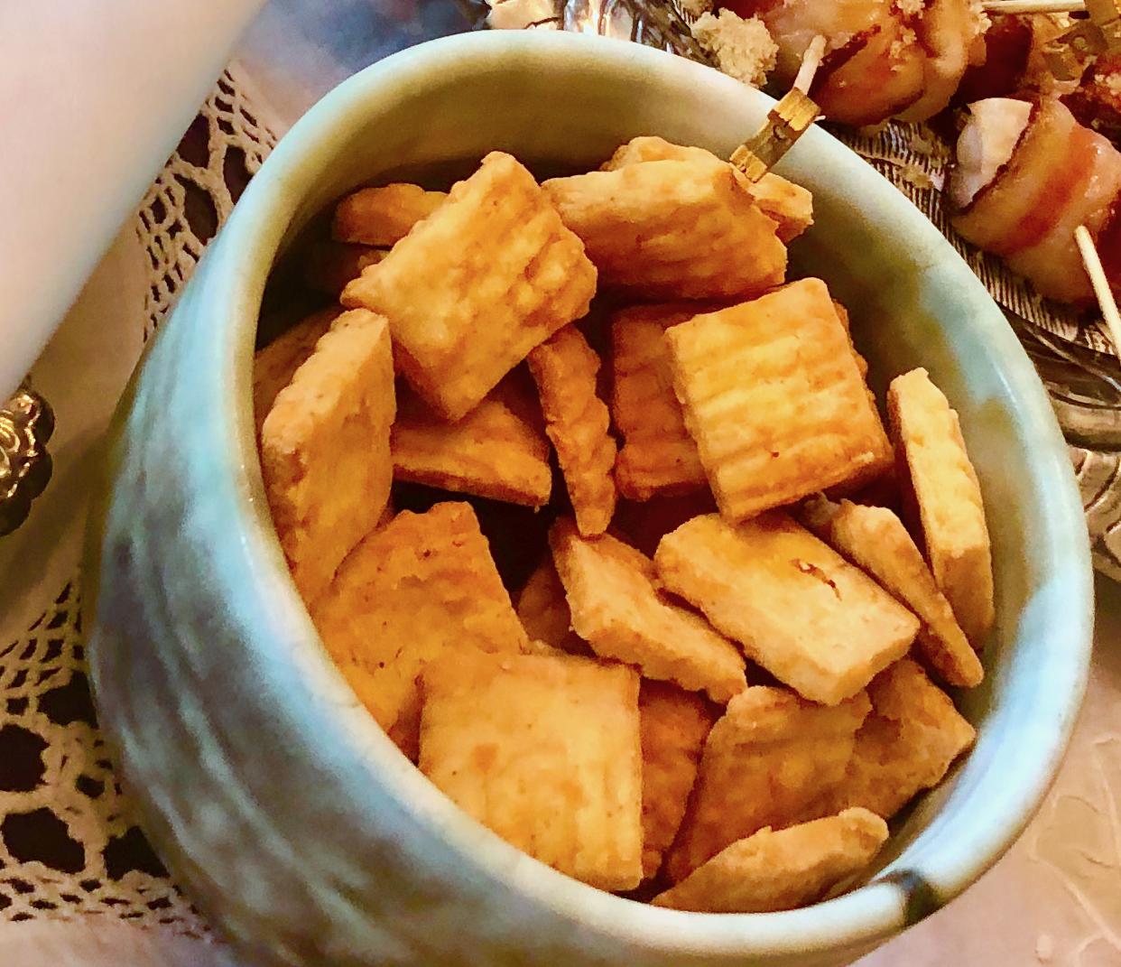 I had planned to have Ansley and Mazie, our Junior Hostesses pass bite sized “finger foods”. I mean, what’s a “nice party” without “finger foods”. However, when the guests list grew I thought it best to transition to “Past” Hors d’oeuvres as in…help yourself as you walk past.