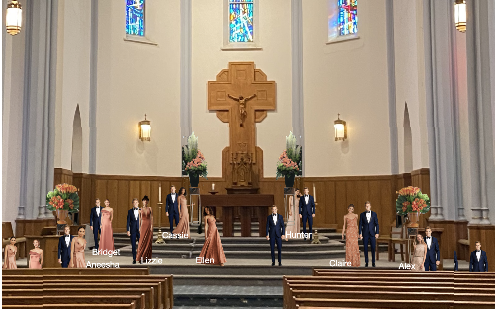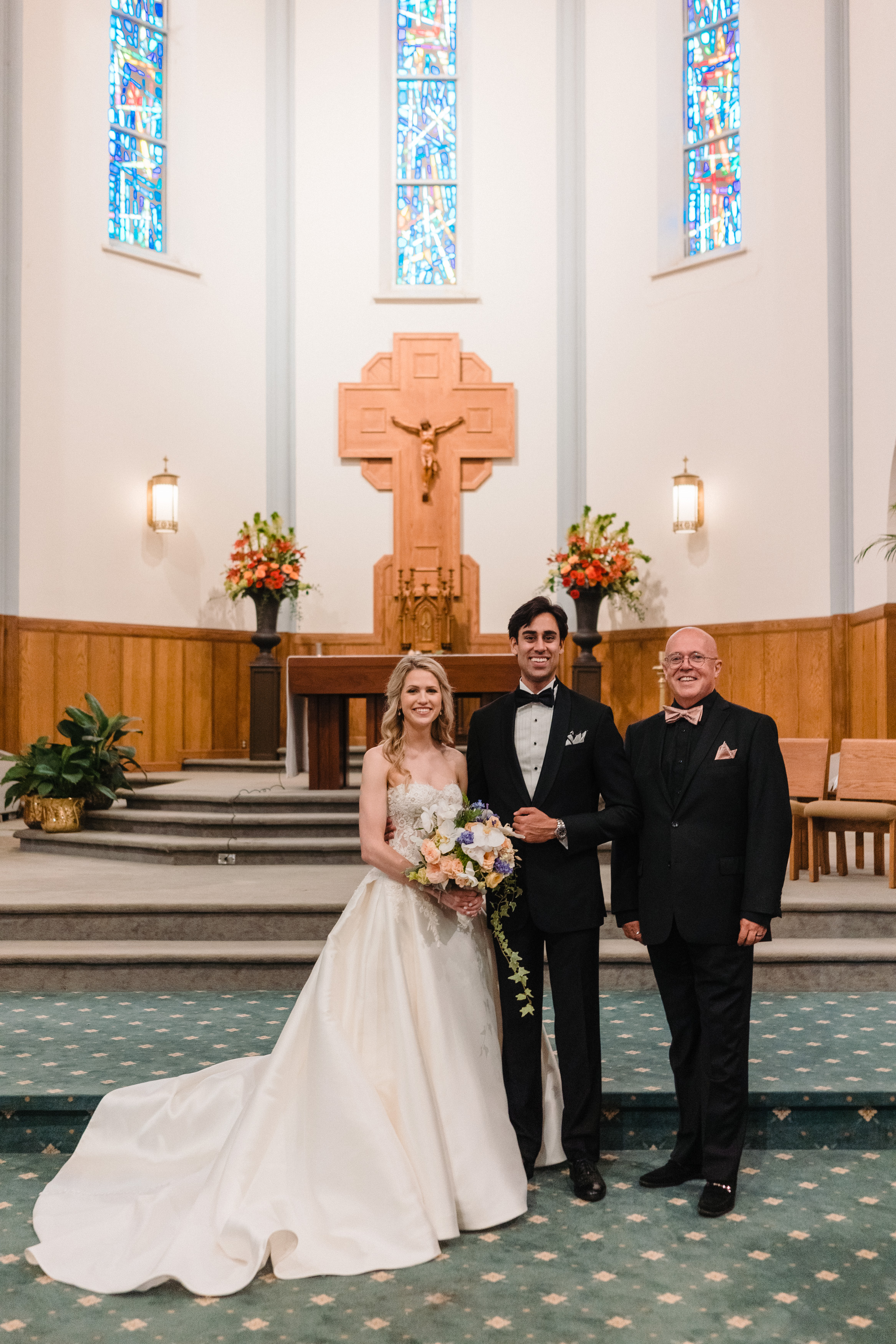 The phone call began a series of phone calls plus enough text’s and email’s to create a Doctoral Thesis titled Weddings: Two Steps Forward, One Step Back…Deep Breath…Repeat. It’s was just like all the weddings I’ve designed…oh wait…oh, hell no it wasn’t. We were in a Pandemic. Julie and I planned everything VIRTUALLY. Not because I didn’t live in Lexington but because it was before the vaccine. I literally did 75% of the details sitting on our sofa and certainly before I stepped foot in the venues. There was only once when I came close to backing out. I’m severely OCD. The image of Historic St. Paul Catholic Church posted on their website showed the altar obviously off-center. The contract clearly stated no furniture on the Chancel could be moved. Creating a ceremony storyboard was excruciating.
