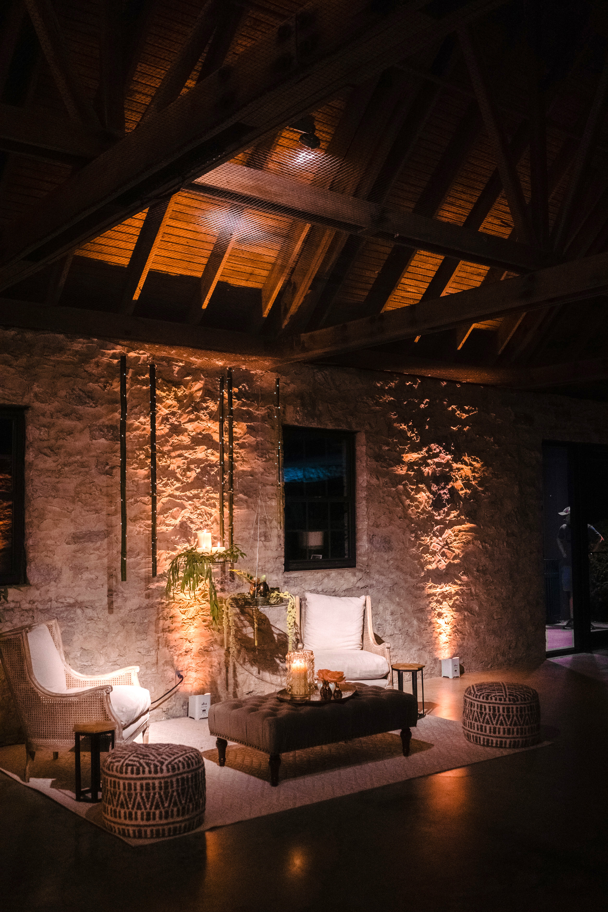 The guests made their way to Keeneland for Cocktail Hour in Keene Barn. The Jody’s team had been working in one end of the barn but trust me…it still left space akin to a football field. We had plenty of room for a green room, band stand, dance floor, two bars and several conversation areas. Everywhere guests looked we tried to create inviting vignettes to help guests feel comfortable and welcomed.