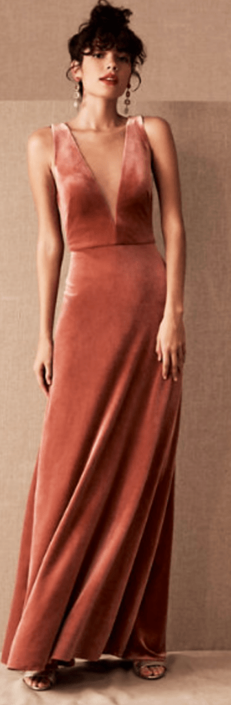 Notice the bridesmaid third from left. That’s my DC Bride, Lizzie. I immediately thought of Lizzie when I saw the velvet dress. As I searched the BHLDN website the collection fell into place. We made some edits due to availability but for the most part the dresses and color palette were determined a month after “the call”. BHLDN called their collection Sedona. We used that for a while because everyone wants to know “what are your colors”. There seems to be a lot of white weddings in Kentucky. It’s Bourbon country and as I got deeper into all the elements and the special touches of the wedding I started calling the color palette Tawny Bourbon. I honestly don’t know that anyone knew that except me. However, those words gave me a mental picture which helped pull the entire production together. We went completely outside the palette on both sides of the spectrum which gave all the elements a painterly touch. Then, we added copper for a metallic element.