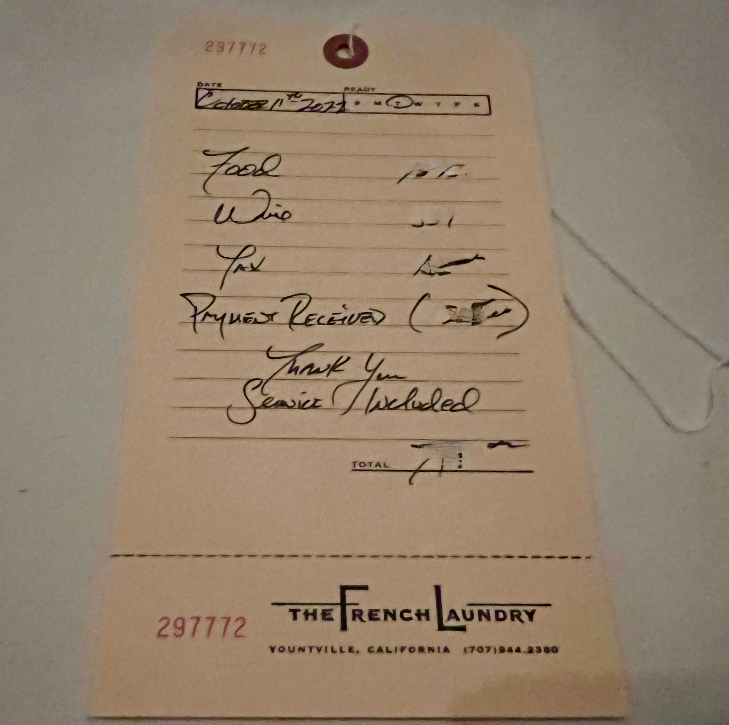 October 11…Drive to Yountville. Dinner at The French Laundry.