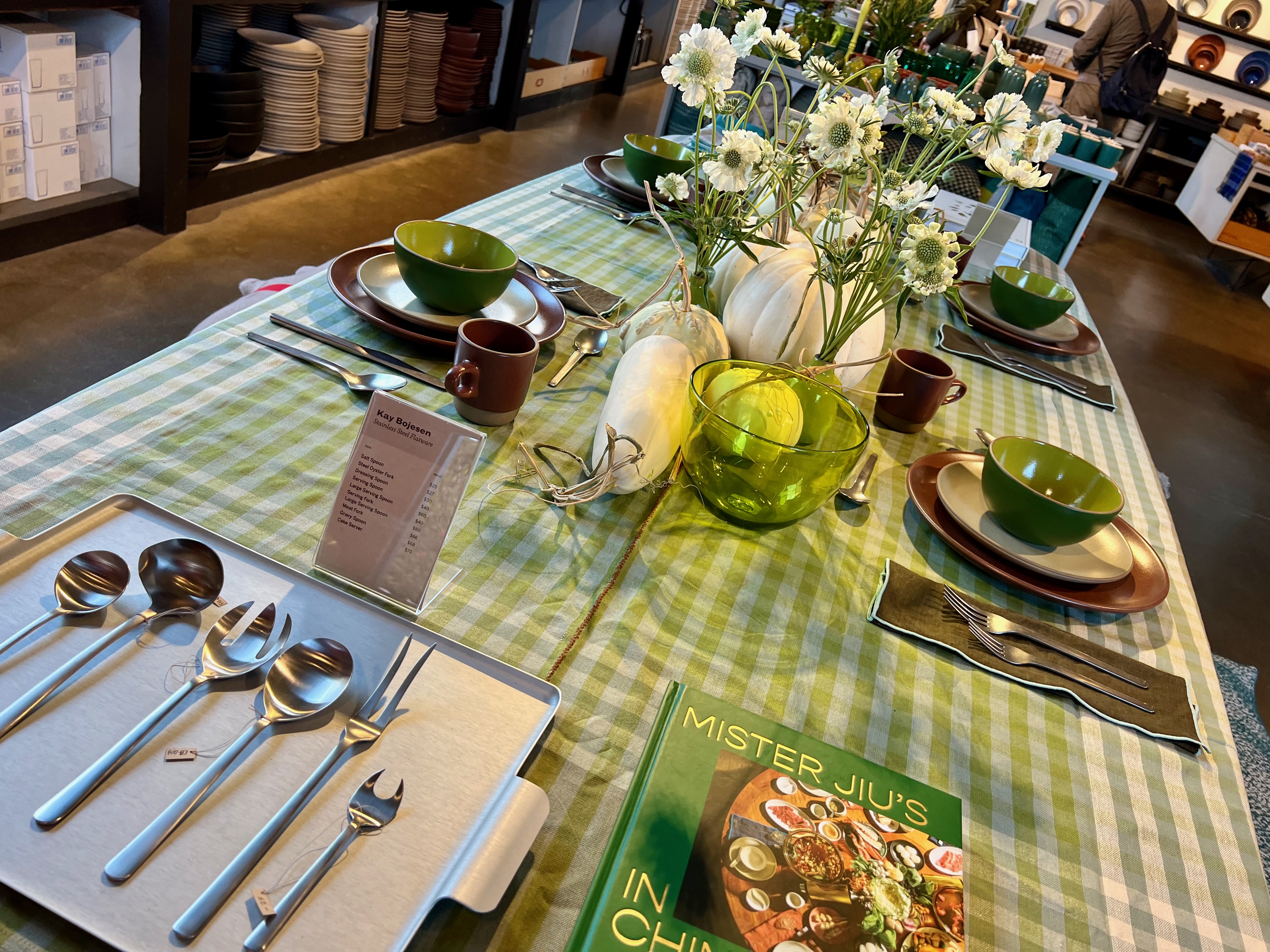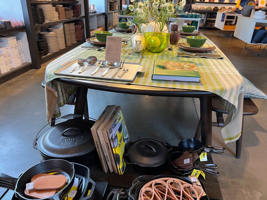 Finding service pieces at Anthem which look so much like me…displayed with a cookbook I just received from Perk and Jules for my birthday!!!