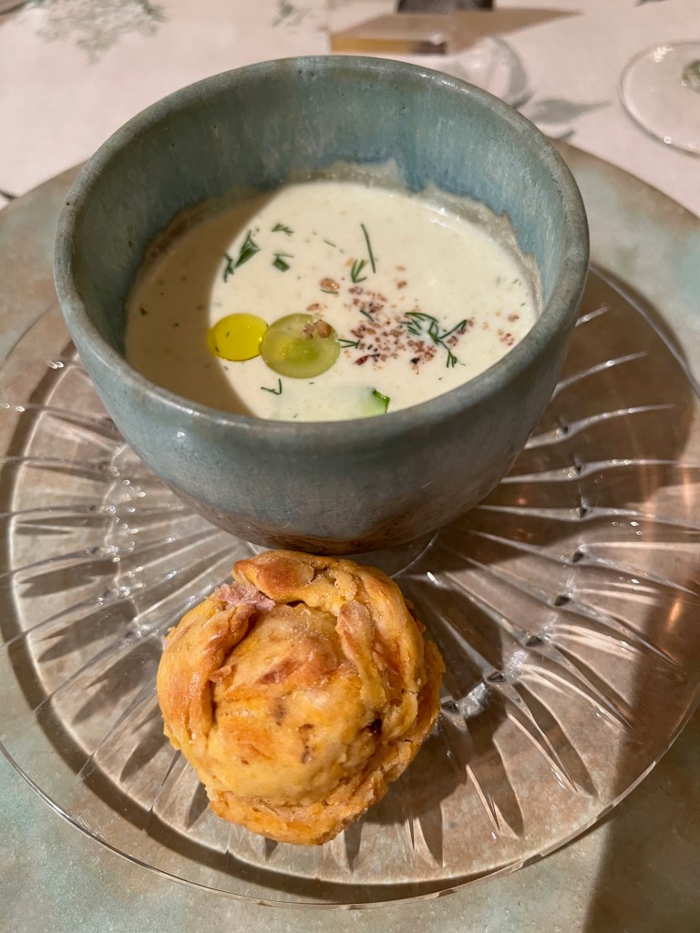 Baby Tim was coddled, cuddled, fed and totally spoiled. Thus, he thought Mrs. Pippin was very strict. I’m not sure he’d ever heard the word no or don’t. Her ruler horrified him. Children nowadays are using an iPad before they walk. They sing the alphabet and count to a hundred at three years old. I think it took us all of first semester to learn our ABC’s and 123’s. Then, second semester we read, ”See Spot. See Spot run. Run, Spot, run”. Surprisingly…or not…what I really remember about first grade was Mrs. Norton’s baked goods. I literally think of her every time I see and/or enjoy the work of a baker or pastry artist like the work we enjoyed on a magical Christmas and 20th Anniversary visit to Twin Farms…Barnard, Vermont.
