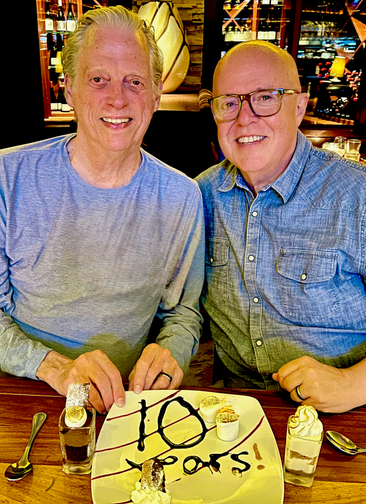 June 26, 2015 Brandt and I were flying to New York City to celebrate the 30th anniversary of 42nd Street. We had a connection at Reagan and were on the tarmac ready to take off when the pilot announced traffic was halted as often happens in DC. I turned my phone back on, opened Facebook and immediately felt like a box of balloons and confetti had exploded in my hand. Every post on my page announced the Supreme Court had just declared the right to marry is a fundamental right guaranteed to all citizens by the Fourteenth Amendment and required all 50 states to license and recognize same-sex marriages. I said, “Oh my god”. Brandt responded, “What is it?”. To which I replied, “Gay marriage was just legalized!!!”.